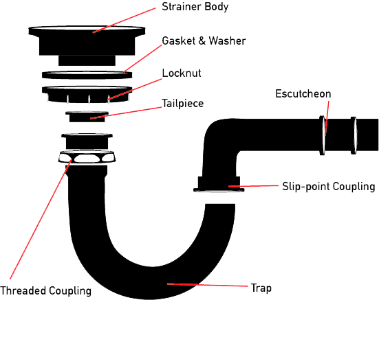 Undermount sinks are glued or clipped to the bottom of your countertop. That seal eventually fails, and water leaks between the sink edge and counter. The drain connections use rubber washers (gaskets) that get squeezed tight by threaded nuts (locknut, coupling nuts, and washers in below). Too loose and water drips out. Too tight and you crush the washer so it can't seal.