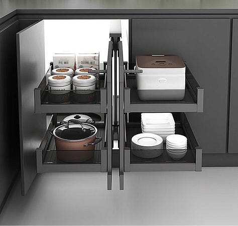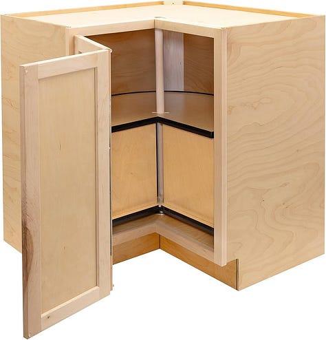 The Problem: Items placed in deep corner cabinets need an archeological dig to retrieve that serving platter.