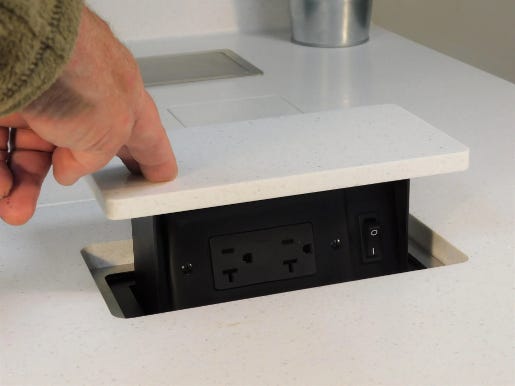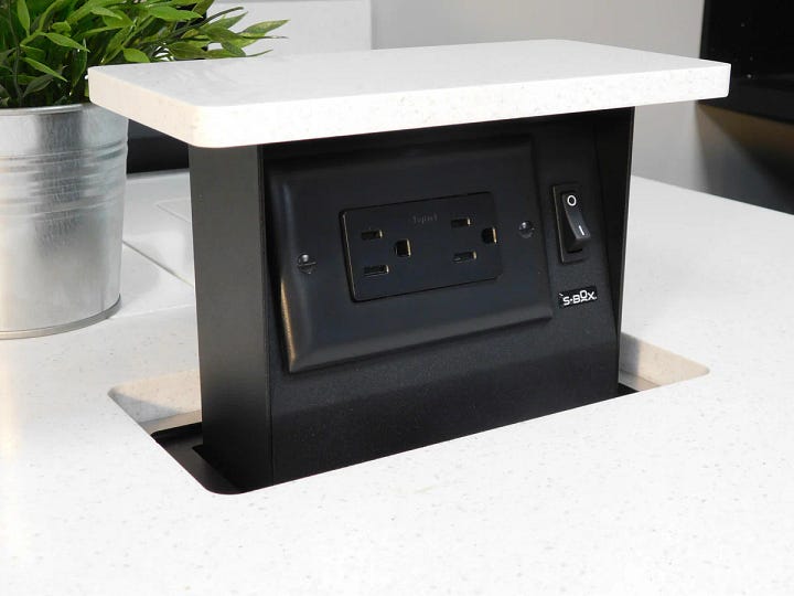 Pop-up outlet keep surfaces clean (yes, there are plug in ones)