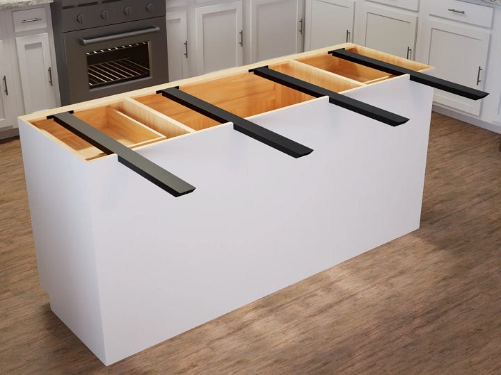 Support any overhang beyond 10 inches with steel brackets or corbels every 18–24 inches. If your counter sticks out far enough for someone to comfortably sit with their knees under it (12-15 inches), it needs reinforcement underneath, spaced about arm’s-length apart.