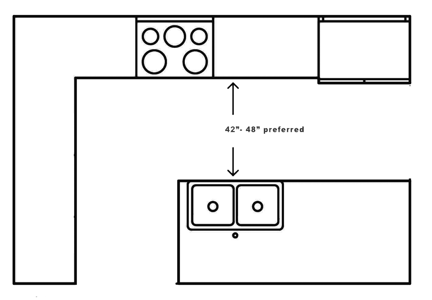 Call a Pro When: Redesigning. Never sacrifice aisle width for extra counter depth. The guidelines prioritize movement over surface area for good reason.